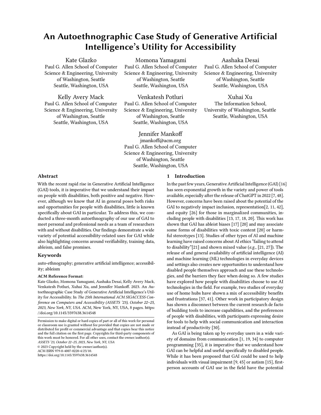 International ACM SIGACCESS Conference on Computers and Accessibility (ASSETS), 2023