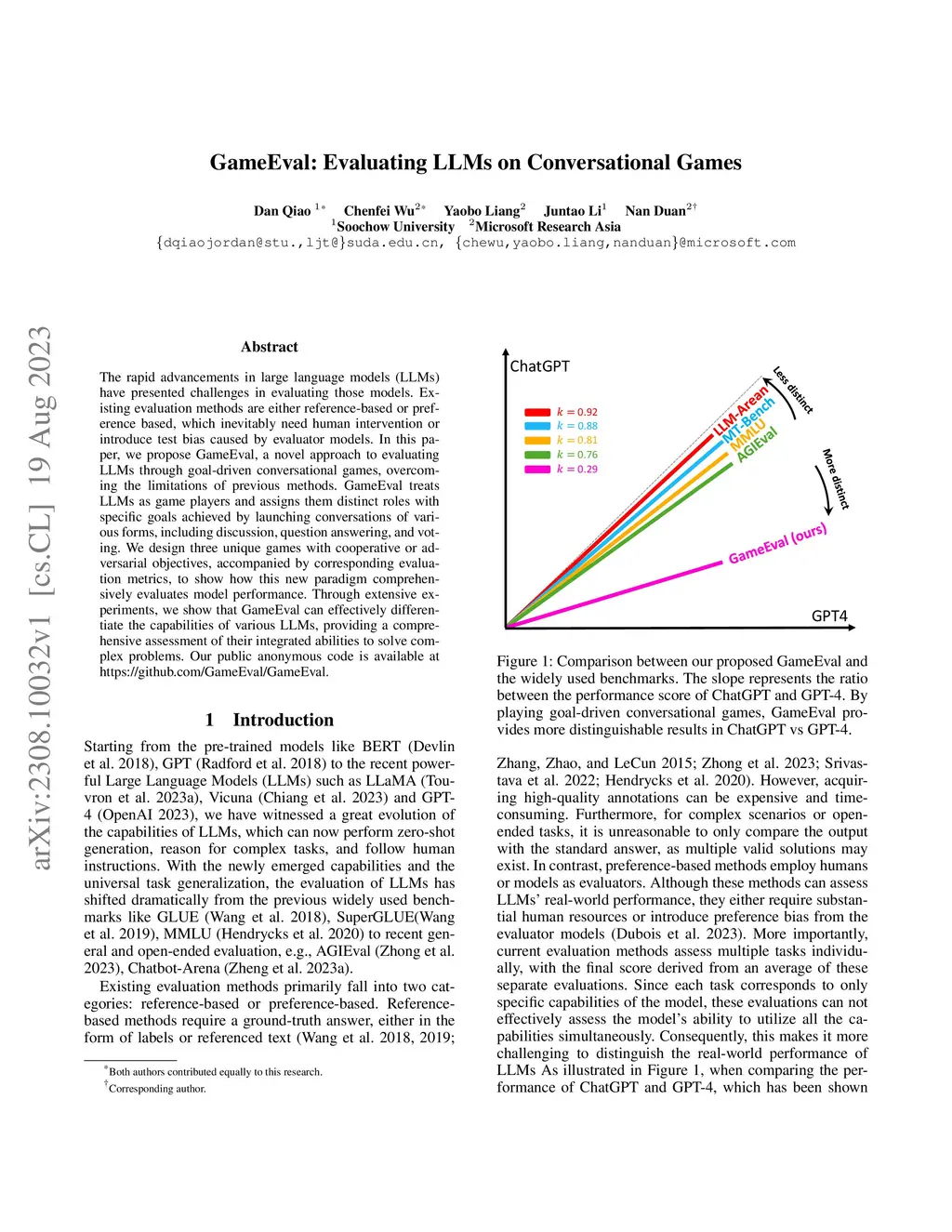 The rapid advancements in large language models (LLMs) have presented challenges in evaluating those models. Existing evaluation methods are either reference-based or preference based, which inevitably need human intervention or introduce test bias caused by evaluator models. In this paper, we propose GameEval, a novel approach to evaluating LLMs through goal-driven conversational games, overcoming the limitations of previous methods. GameEval treats LLMs as game players and assigns them distinct roles with specific goals achieved by launching conversations of various forms, including discussion, question answering, and voting. We design three unique games with cooperative or adversarial objectives, accompanied by corresponding evaluation metrics, to show how this new paradigm comprehensively evaluates model performance.Through extensive experiments, we show that GameEval can effectively differentiate the capabilities of various LLMs, providing a comprehensive assessment of their integrated abilities to solve complex problems. Our public anonymous code is available at https://github.com/GameEval/GameEval.