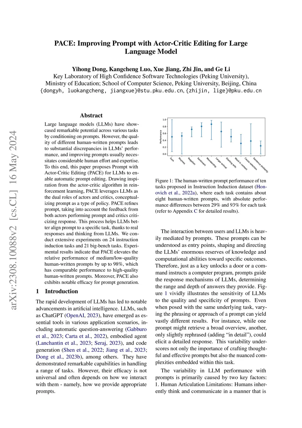 PACE: Improving Prompt with Actor-Critic Editing for Large Language