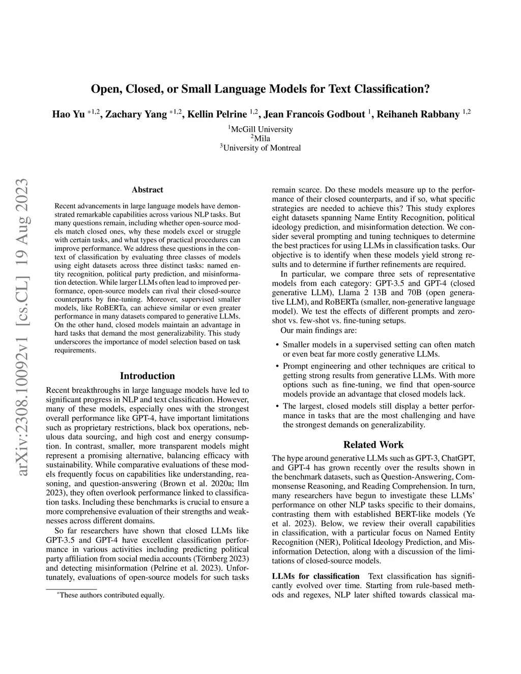 Open, Closed, or Small Language Models for Text Classification?