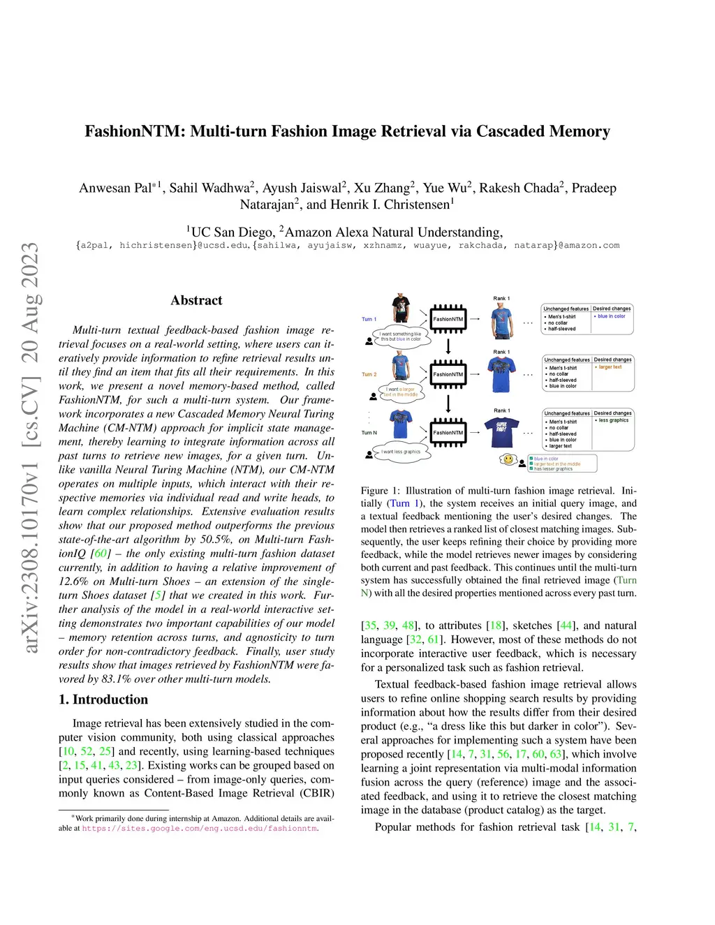 FashionNTM: Multi-turn Fashion Image Retrieval via Cascaded Memory