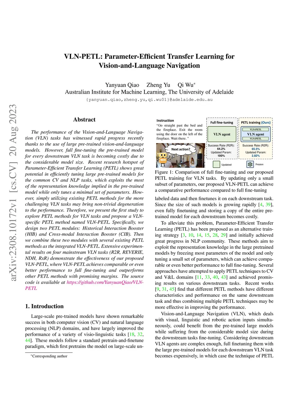 VLN-PETL: Parameter-Efficient Transfer Learning for Vision-and-Language