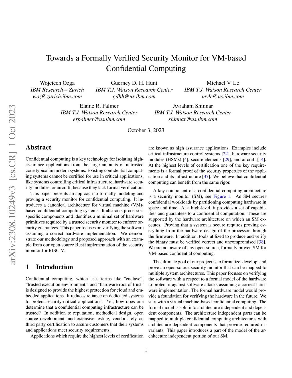 Towards a Formally Verified Security Monitor for VM-based Confidential