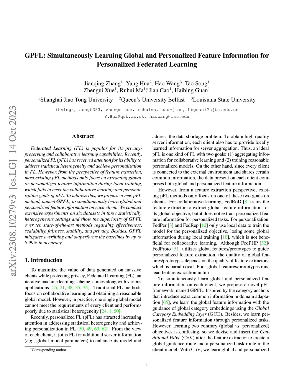 GPFL: Simultaneously Learning Global and Personalized Feature