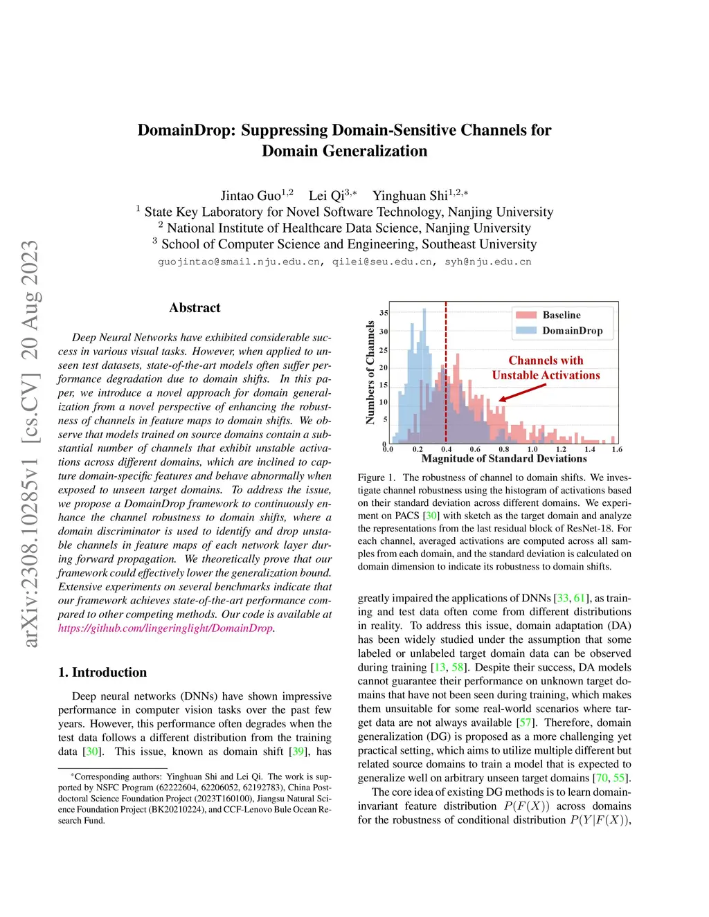 DomainDrop: Suppressing Domain-Sensitive Channels for Domain