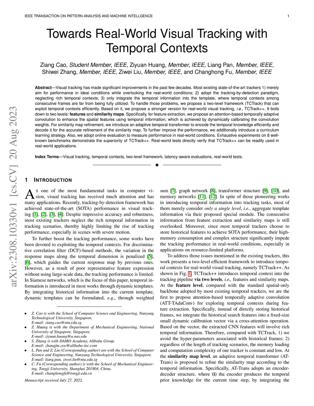 Visual tracking has made significant improvements in the past few decades. Most existing state-of-the-art trackers 1) merely aim for performance in ideal conditions while overlooking the real-world conditions; 2) adopt the tracking-by-detection paradigm, neglecting rich temporal contexts; 3) only integrate the temporal information into the template, where temporal contexts among consecutive frames are far from being fully utilized. To handle those problems, we propose a two-level framework (TCTrack) that can exploit temporal contexts efficiently. Based on it, we propose a stronger version for real-world visual tracking, i.e., TCTrack++. It boils down to two levels: features and similarity maps. Specifically, for feature extraction, we propose an attention-based temporally adaptive convolution to enhance the spatial features using temporal information, which is achieved by dynamically calibrating the convolution weights. For similarity map refinement, we introduce an adaptive temporal transformer to encode the temporal knowledge efficiently and decode it for the accurate refinement of the similarity map. To further improve the performance, we additionally introduce a curriculum learning strategy. Also, we adopt online evaluation to measure performance in real-world conditions. Exhaustive experiments on 8 wellknown benchmarks demonstrate the superiority of TCTrack++. Real-world tests directly verify that TCTrack++ can be readily used in real-world applications.