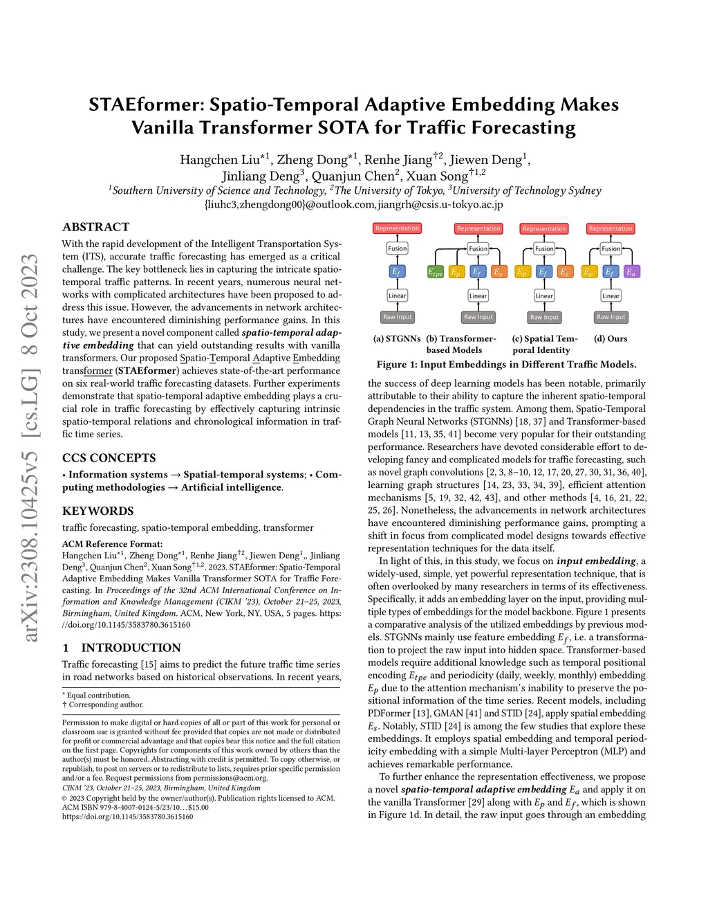 STAEformer: Spatio-Temporal Adaptive Embedding Makes Vanilla Transformer