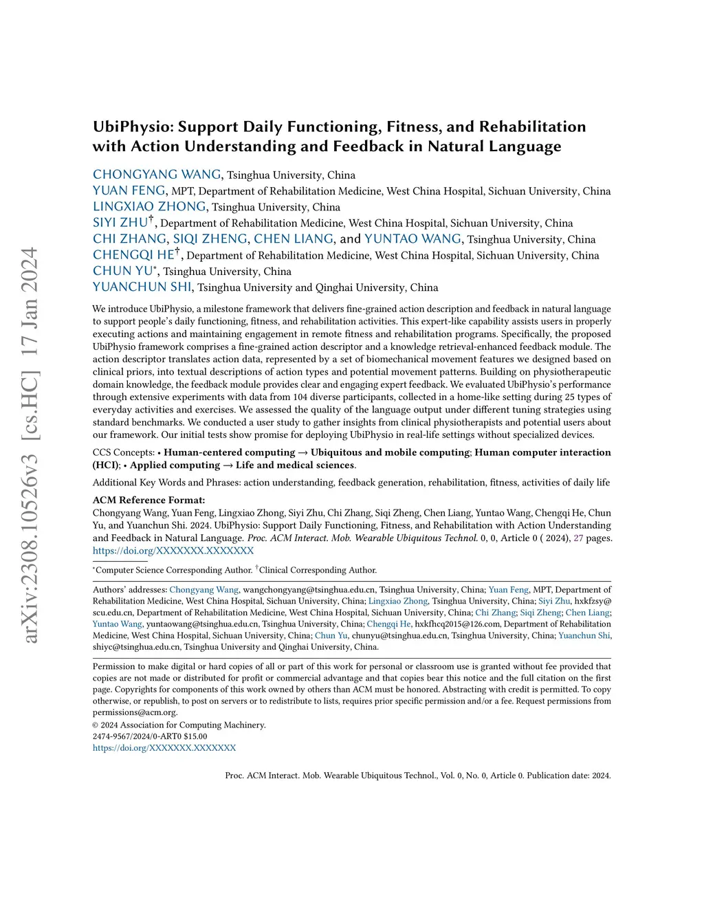 UbiPhysio: Support Daily Functioning, Fitness, and Rehabilitation with