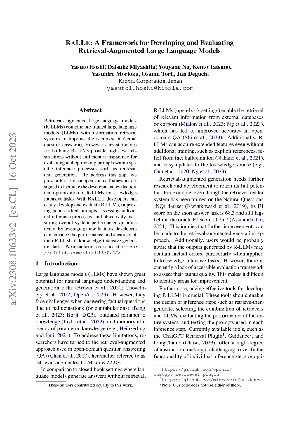 Retrieval-augmented large language models (R-LLMs) combine pre-trained large language models (LLMs) with information retrieval systems to improve the accuracy of factual question-answering. However, current libraries for building R-LLMs provide high-level abstractions without sufficient transparency for evaluating and optimizing prompts within specific inference processes such as retrieval and generation. To address this gap, we present RaLLe, an open-source framework designed to facilitate the development, evaluation, and optimization of R-LLMs for knowledge-intensive tasks. With RaLLe, developers can easily develop and evaluate R-LLMs, improving hand-crafted prompts, assessing individual inference processes, and objectively measuring overall system performance quantitatively. By leveraging these features, developers can enhance the performance and accuracy of their R-LLMs in knowledge-intensive generation tasks. We open-source our code at https://github.com/yhoshi3/RaLLe.