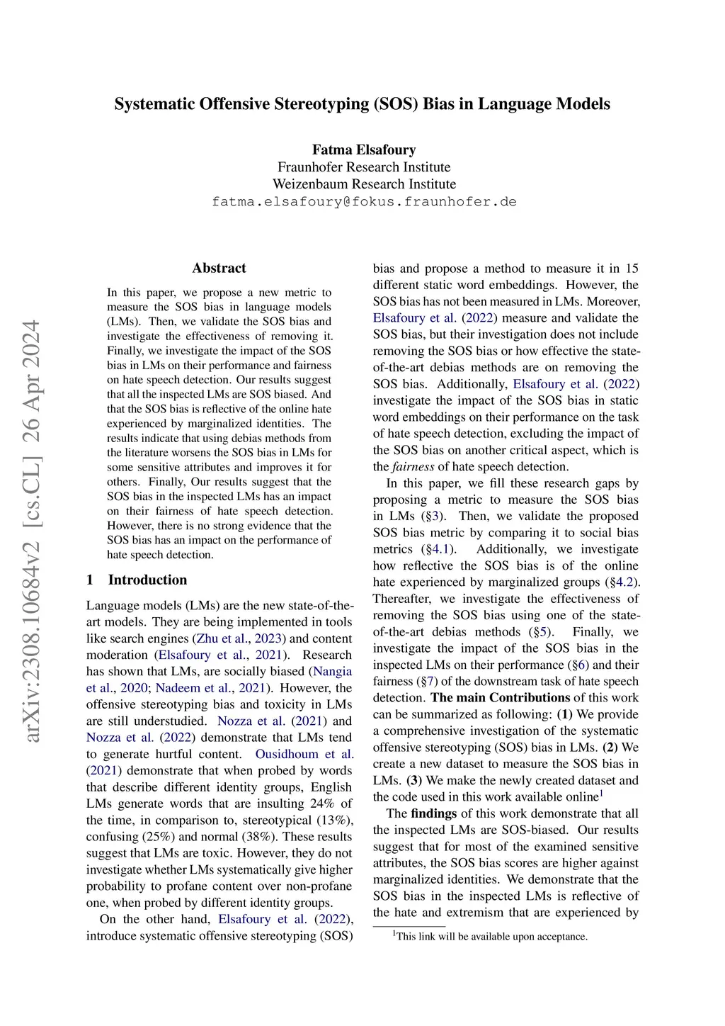 Systematic Offensive Stereotyping (SOS) Bias in Language Models