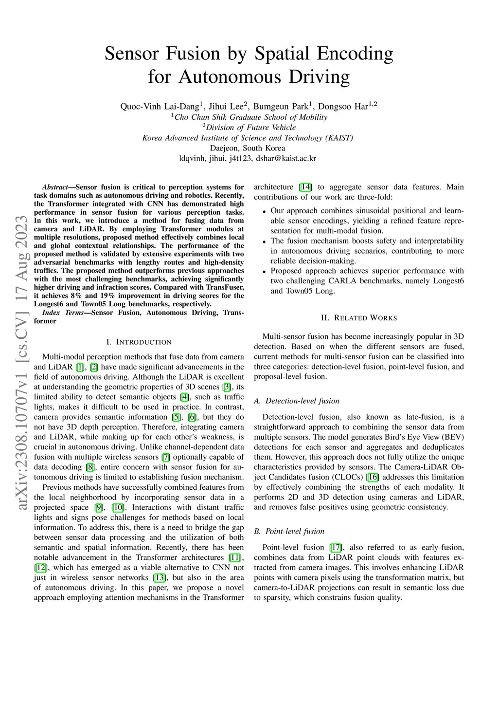 Sensor Fusion by Spatial Encoding for Autonomous Driving