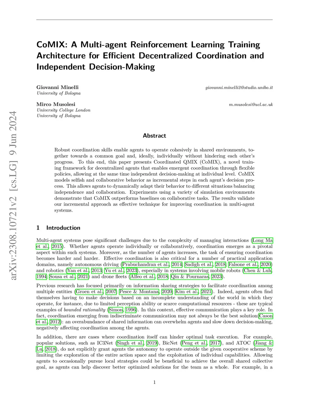 Robust coordination skills enable agents to operate cohesively in shared environments, together towards a common goal and, ideally, individually without hindering each other's progress. To this end, this paper presents Coordinated QMIX (CoMIX), a novel training framework for decentralized agents that enables emergent coordination through flexible policies, allowing at the same time independent decision-making at individual level. CoMIX models selfish and collaborative behavior as incremental steps in each agent's decision process. This allows agents to dynamically adapt their behavior to different situations balancing independence and collaboration. Experiments using a variety of simulation environments demonstrate that CoMIX outperforms baselines on collaborative tasks. The results validate our incremental approach as effective technique for improving coordination in multi-agent systems.