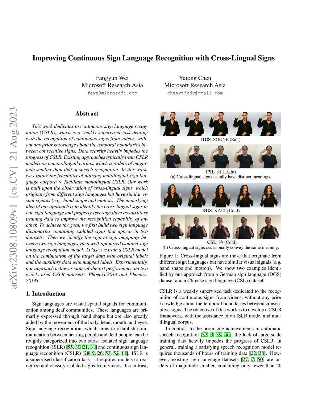 Improving Continuous Sign Language Recognition with Cross-Lingual Signs
