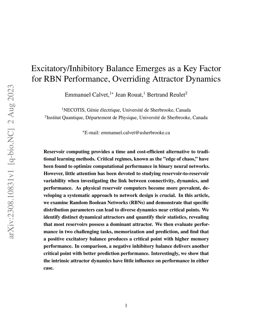 Excitatory/Inhibitory Balance Emerges as a Key Factor for RBN