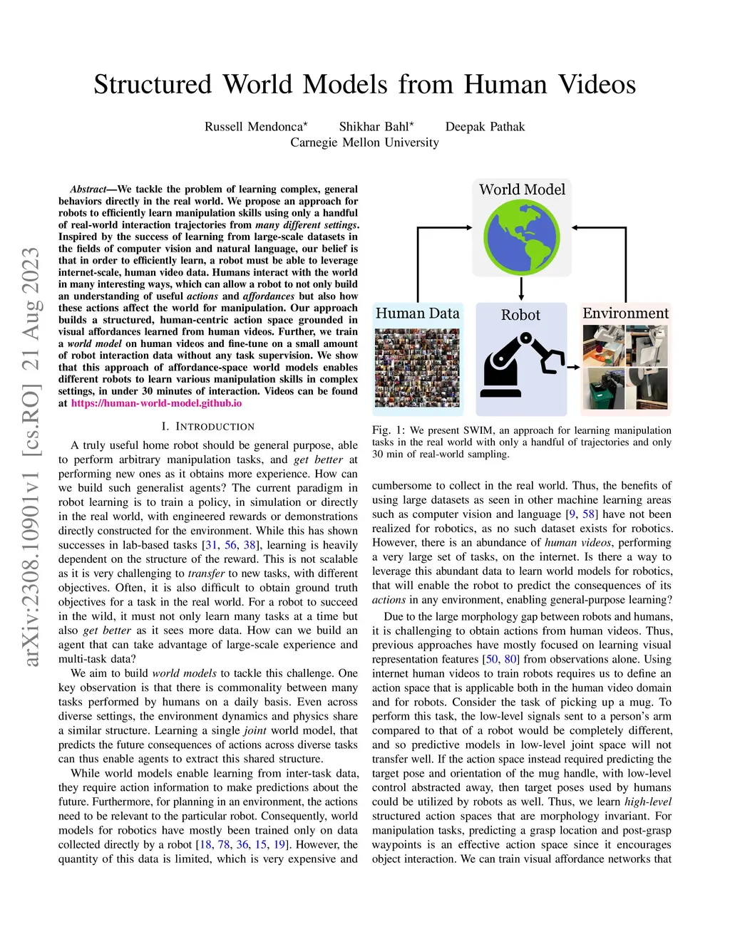 Structured World Models from Human Videos