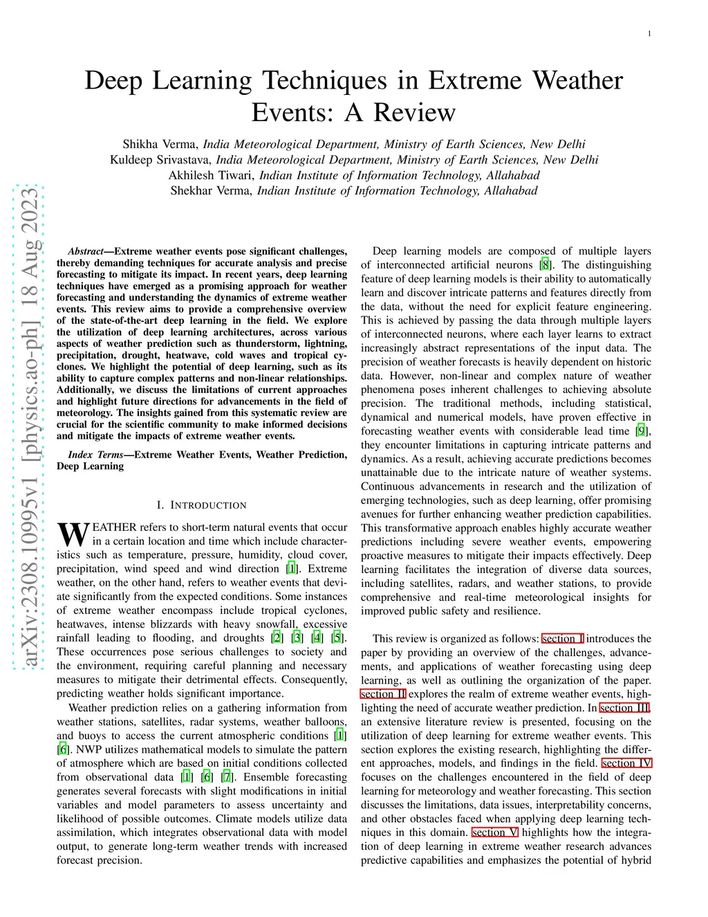 Deep Learning Techniques in Extreme Weather Events: A Review
