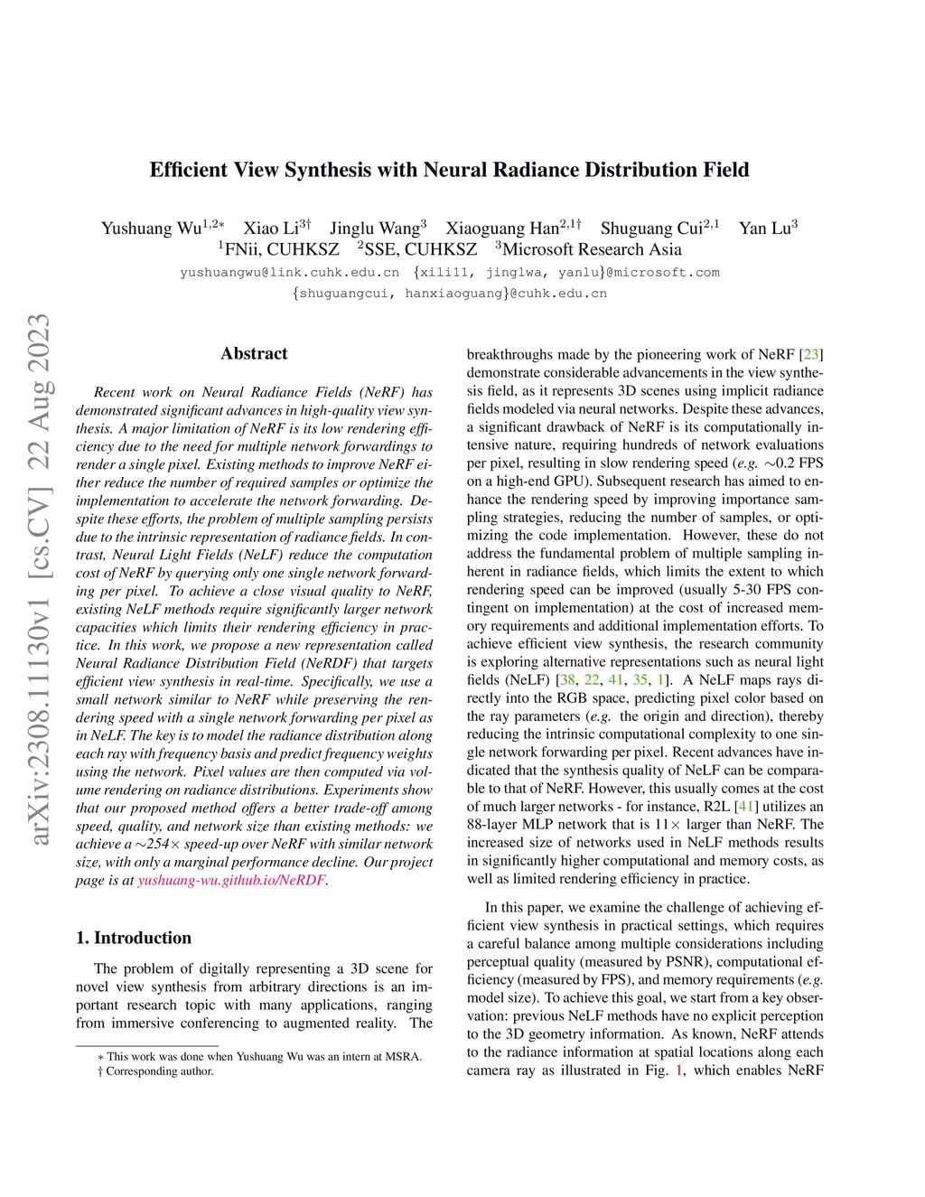 Efficient View Synthesis with Neural Radiance Distribution Field