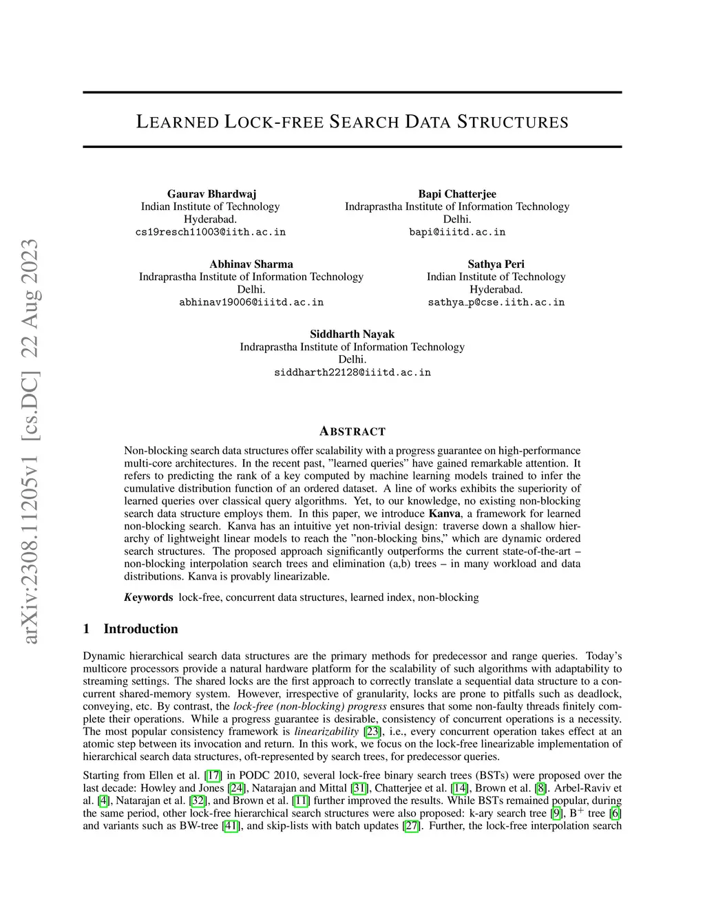 Non-blocking search data structures offer scalability with a progress guarantee on high-performance multi-core architectures. In the recent past, "learned queries" have gained remarkable attention. It refers to predicting the rank of a key computed by machine learning models trained to infer the cumulative distribution function of an ordered dataset. A line of works exhibits the superiority of learned queries over classical query algorithms. Yet, to our knowledge, no existing non-blocking search data structure employs them. In this paper, we introduce \textbf{Kanva}, a framework for learned non-blocking search. Kanva has an intuitive yet non-trivial design: traverse down a shallow hierarchy of lightweight linear models to reach the "non-blocking bins," which are dynamic ordered search structures. The proposed approach significantly outperforms the current state-of-the-art -- non-blocking interpolation search trees and elimination (a,b) trees -- in many workload and data distributions. Kanva is provably linearizable.