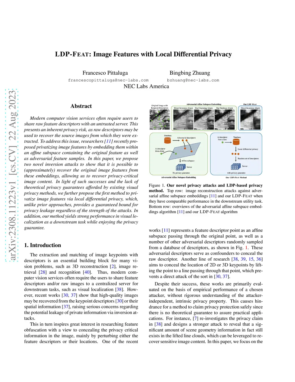 LDP-Feat: Image Features with Local Differential Privacy