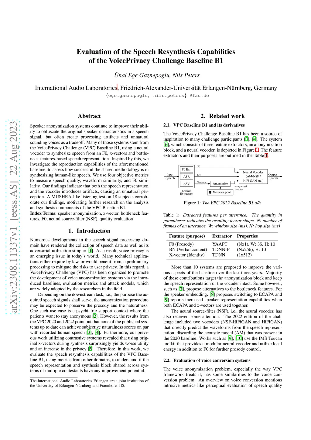 Speaker anonymization systems continue to improve their ability to obfuscate the original speaker characteristics in a speech signal, but often create processing artifacts and unnatural sounding voices as a tradeoff. Many of those systems stem from the VoicePrivacy Challenge (VPC) Baseline B1, using a neural vocoder to synthesize speech from an F0, x-vectors and bottleneck features-based speech representation. Inspired by this, we investigate the reproduction capabilities of the aforementioned baseline, to assess how successful the shared methodology is in synthesizing human-like speech. We use four objective metrics to measure speech quality, waveform similarity, and F0 similarity. Our findings indicate that both the speech representation and the vocoder introduces artifacts, causing an unnatural perception. A MUSHRA-like listening test on 18 subjects corroborate our findings, motivating further research on the analysis and synthesis components of the VPC Baseline B1.