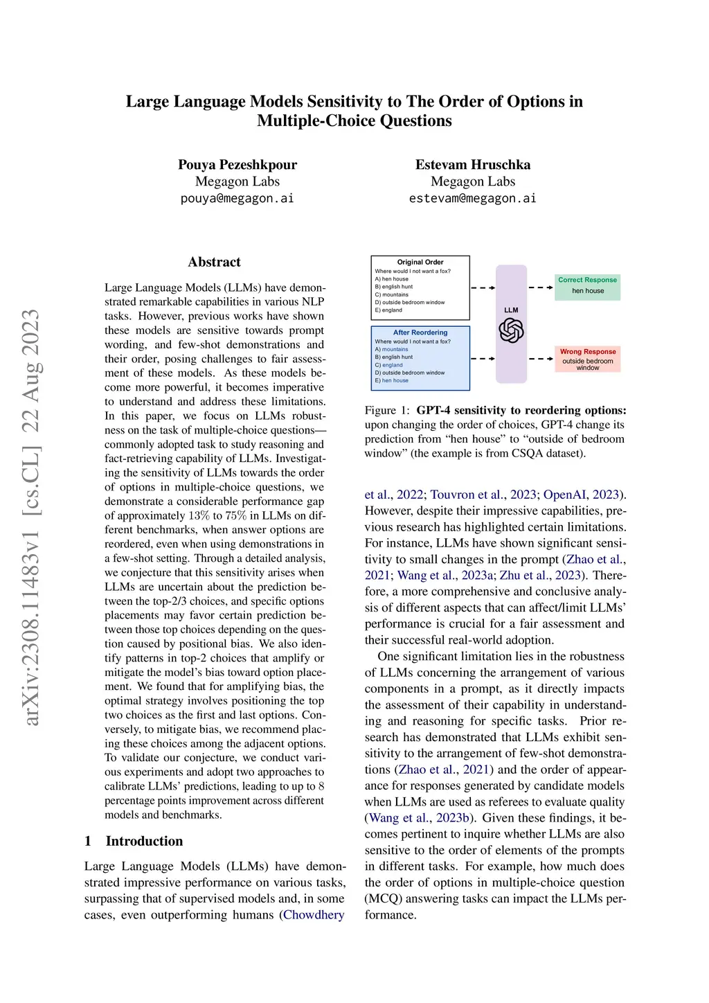 Large Language Models Sensitivity to The Order of Options in