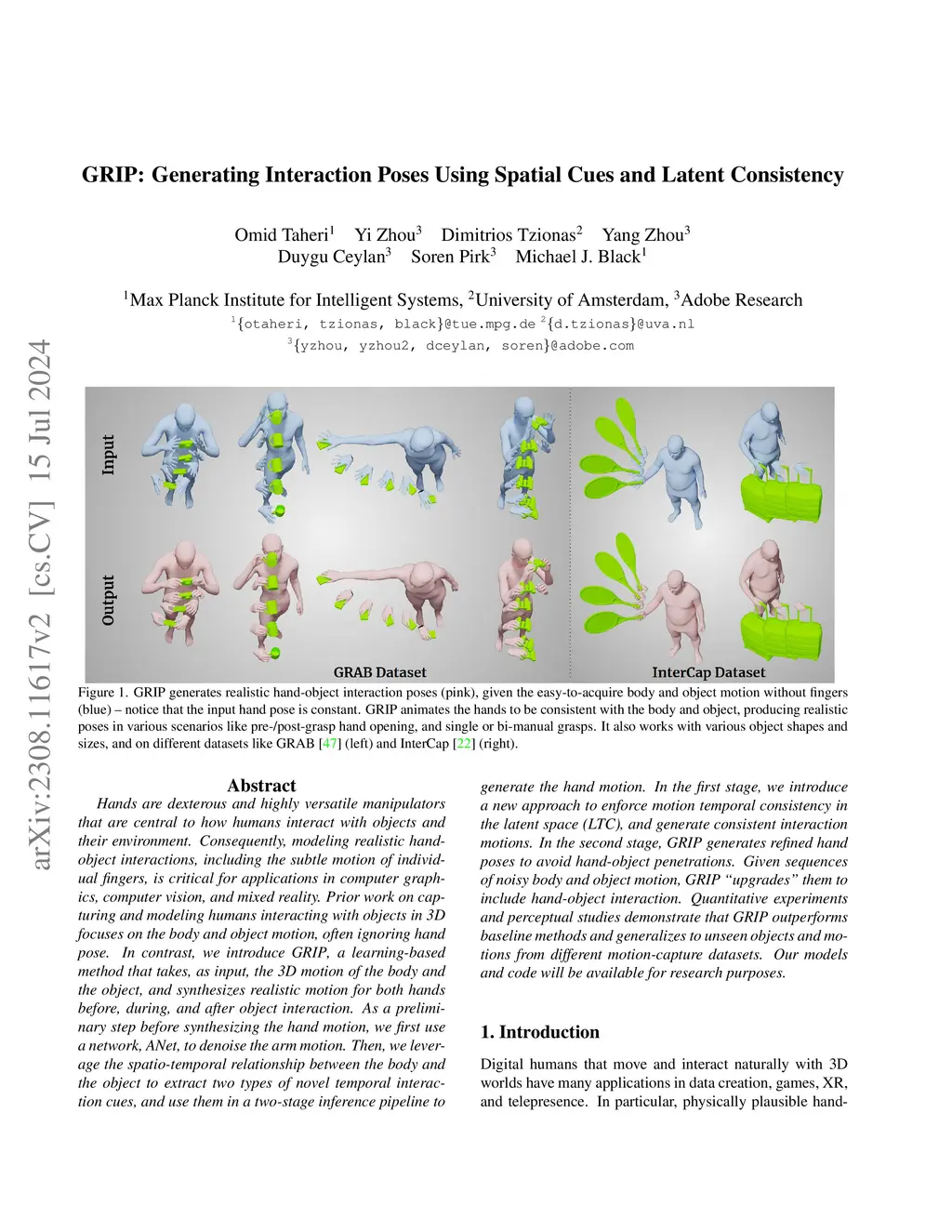 GRIP: Generating Interaction Poses Using Spatial Cues and Latent