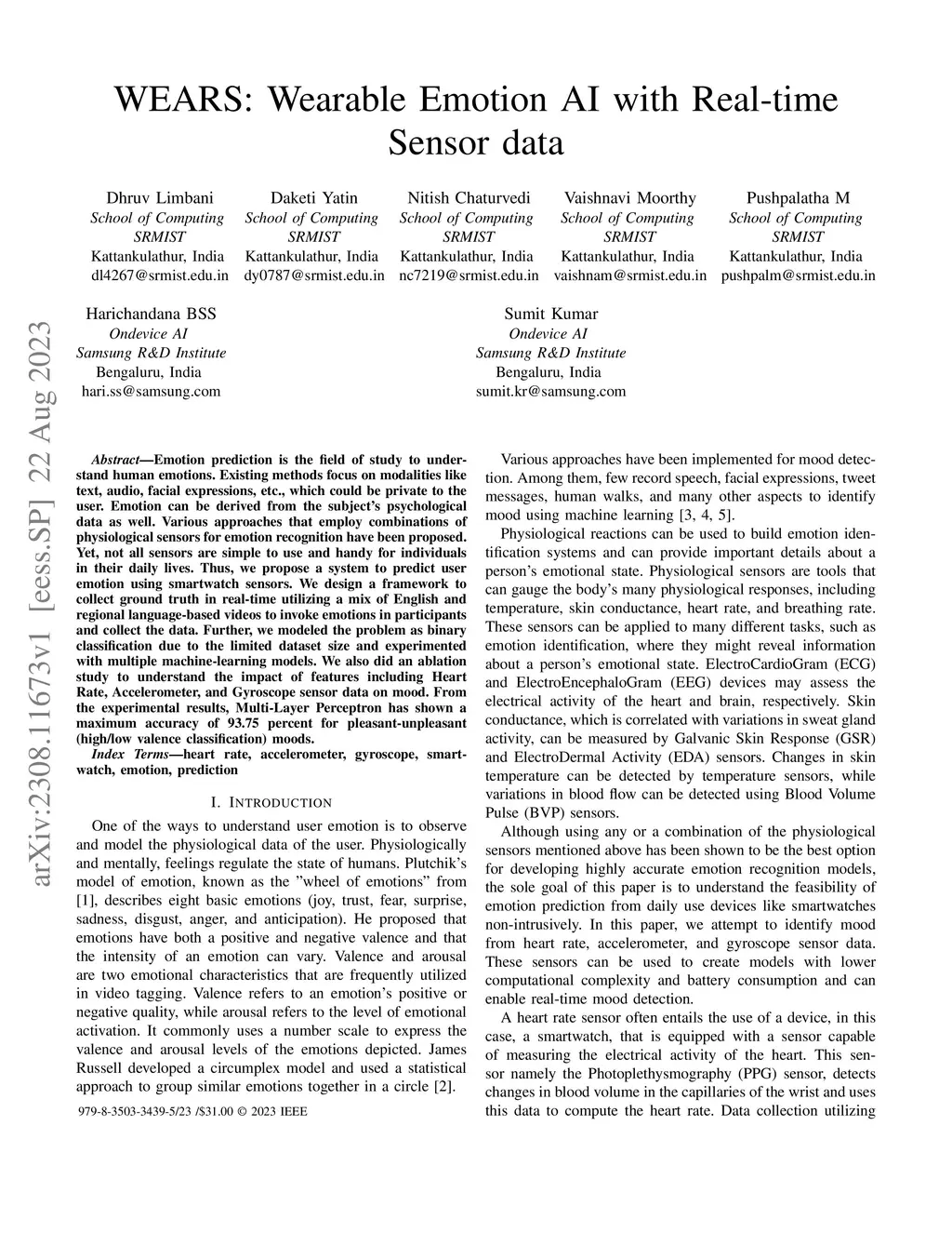 WEARS: Wearable Emotion AI with Real-time Sensor data