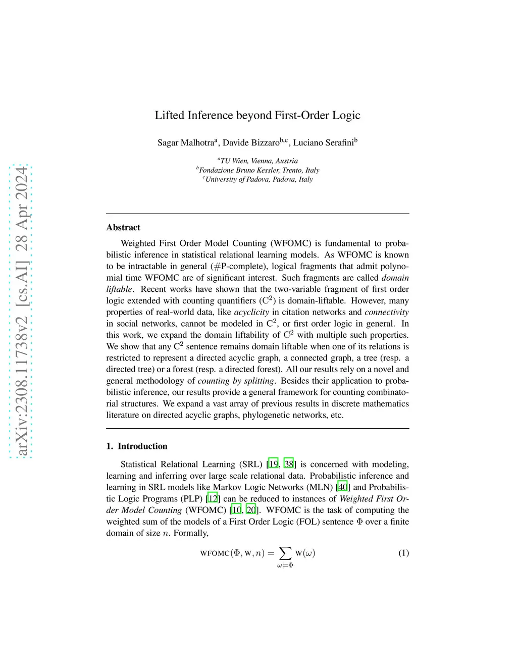 Weighted First Order Model Counting (WFOMC) is fundamental to probabilistic inference in statistical relational learning models. As WFOMC is known to be intractable in general (P-complete), logical fragments that admit polynomial time WFOMC are of significant interest. Such fragments are called domain liftable. Recent works have shown that the two-variable fragment of first order logic extended with counting quantifiers () is domain-liftable. However, many properties of real-world data, like acyclicity in citation networks and connectivity in social networks, cannot be modeled in , or first order logic in general. In this work, we expand the domain liftability of with multiple such properties. We show that any sentence remains domain liftable when one of its relations is restricted to represent a directed acyclic graph, a connected graph, a tree (resp. a directed tree) or a forest (resp. a directed forest). All our results rely on a novel and general methodology of "counting by splitting". Besides their application to probabilistic inference, our results provide a general framework for counting combinatorial structures. We expand a vast array of previous results in discrete mathematics literature on directed acyclic graphs, phylogenetic networks, etc.