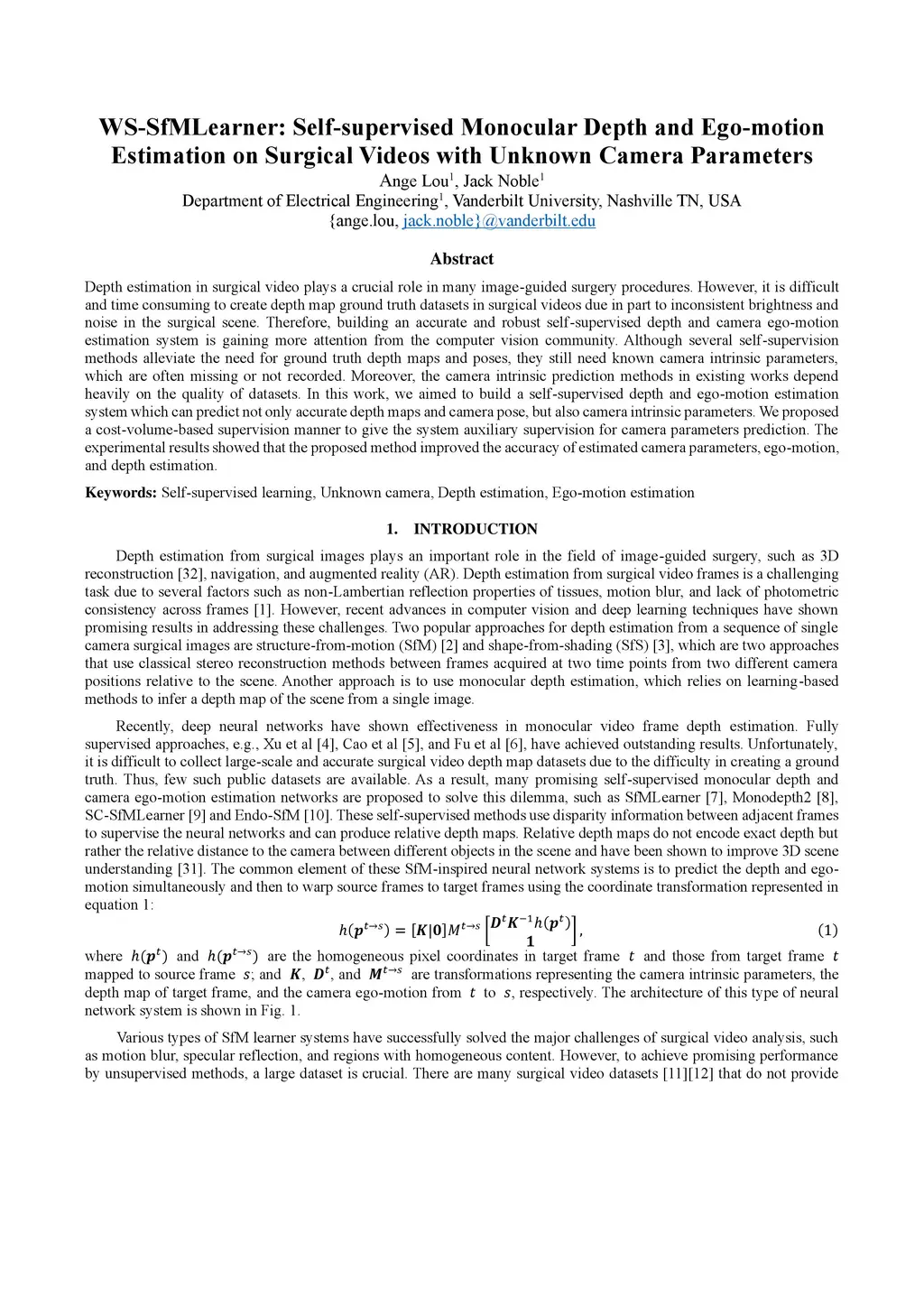 WS-SfMLearner: Self-supervised Monocular Depth and Ego-motion Estimation