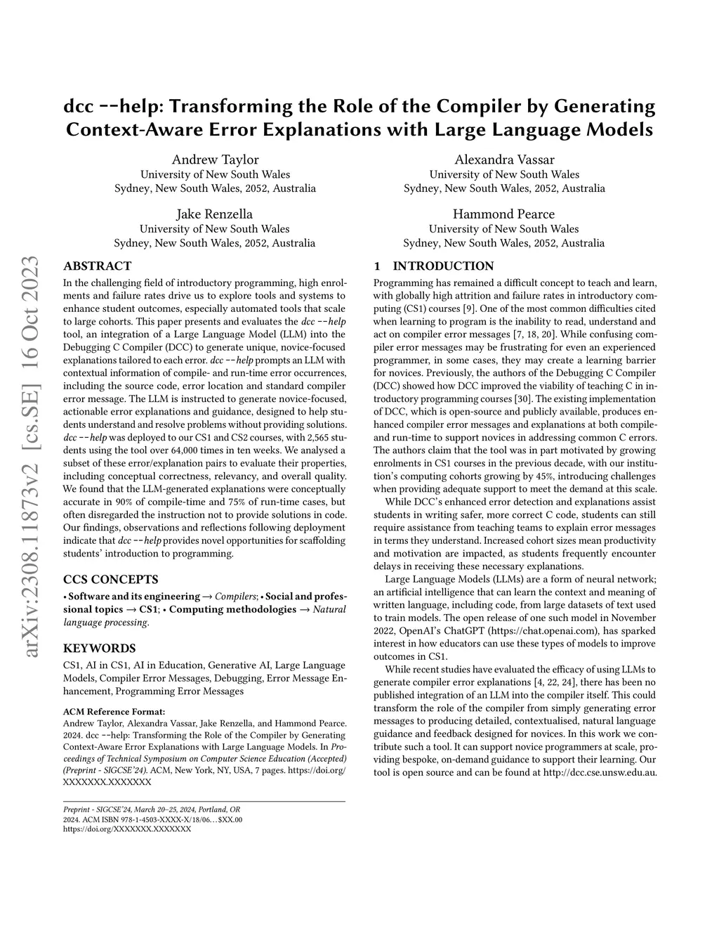 Dcc --help: Generating Context-Aware Compiler Error Explanations with