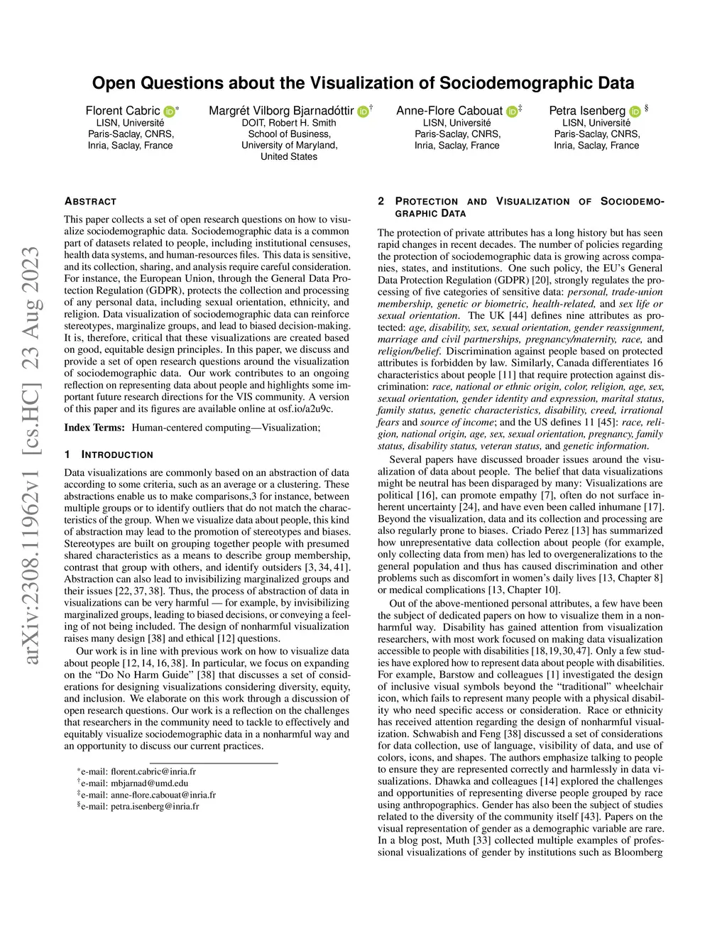 Open Questions about the Visualization of Sociodemographic Data