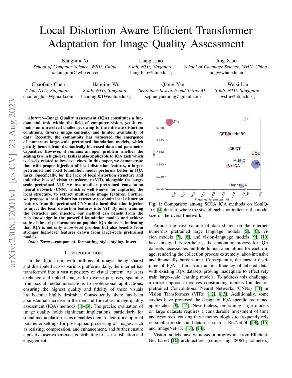 Local Distortion Aware Efficient Transformer Adaptation for Image