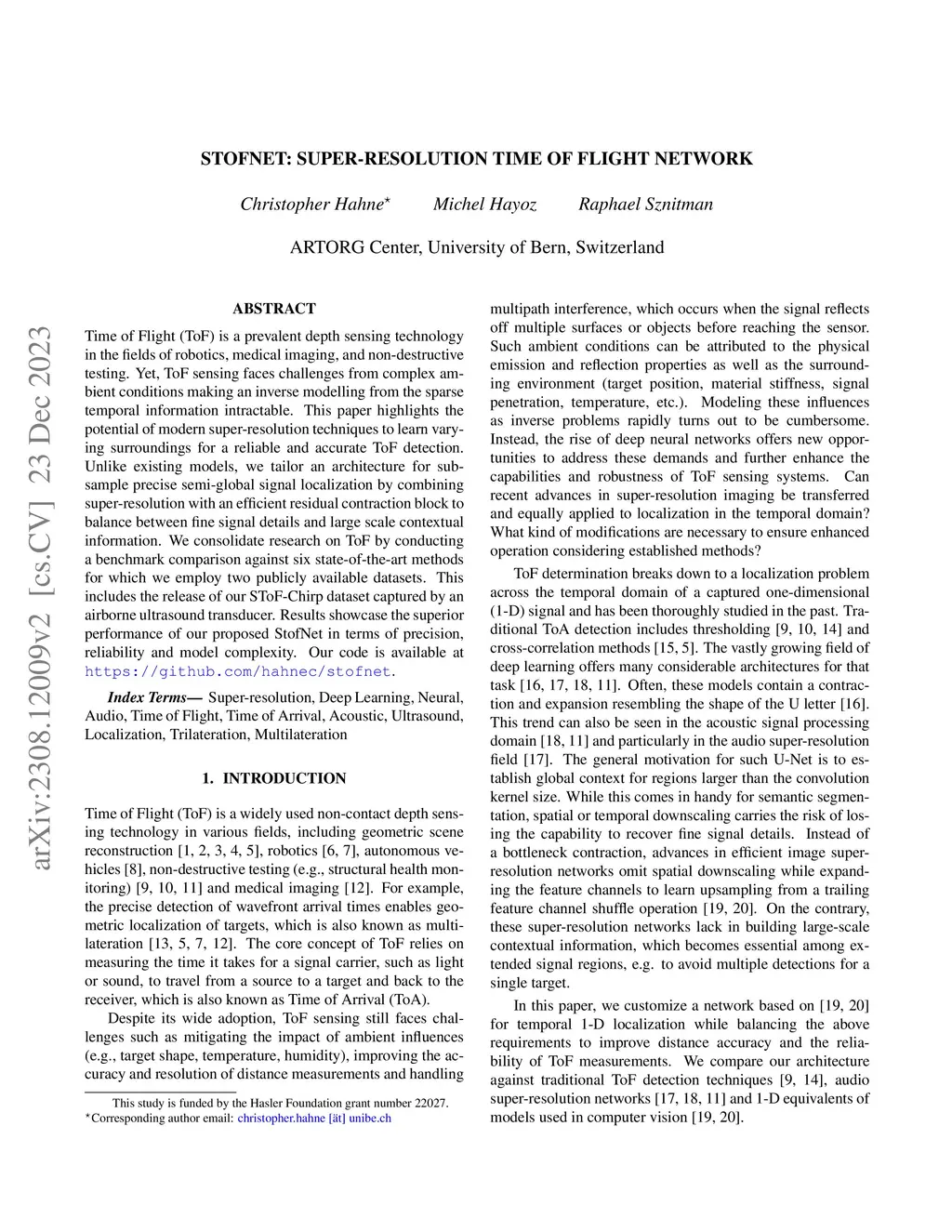 Time of Flight (ToF) is a prevalent depth sensing technology in the fields of robotics, medical imaging, and non-destructive testing. Yet, ToF sensing faces challenges from complex ambient conditions making an inverse modelling from the sparse temporal information intractable. This paper highlights the potential of modern super-resolution techniques to learn varying surroundings for a reliable and accurate ToF detection. Unlike existing models, we tailor an architecture for sub-sample precise semi-global signal localization by combining super-resolution with an efficient residual contraction block to balance between fine signal details and large scale contextual information. We consolidate research on ToF by conducting a benchmark comparison against six state-of-the-art methods for which we employ two publicly available datasets. This includes the release of our SToF-Chirp dataset captured by an airborne ultrasound transducer. Results showcase the superior performance of our proposed StofNet in terms of precision, reliability and model complexity. Our code is available at https://github.com/hahnec/stofnet.