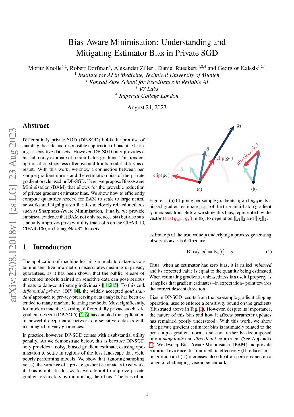 Differentially private SGD (DP-SGD) holds the promise of enabling the safe and responsible application of machine learning to sensitive datasets. However, DP-SGD only provides a biased, noisy estimate of a mini-batch gradient. This renders optimisation steps less effective and limits model utility as a result. With this work, we show a connection between per-sample gradient norms and the estimation bias of the private gradient oracle used in DP-SGD. Here, we propose Bias-Aware Minimisation (BAM) that allows for the provable reduction of private gradient estimator bias. We show how to efficiently compute quantities needed for BAM to scale to large neural networks and highlight similarities to closely related methods such as Sharpness-Aware Minimisation. Finally, we provide empirical evidence that BAM not only reduces bias but also substantially improves privacy-utility trade-offs on the CIFAR-10, CIFAR-100, and ImageNet-32 datasets.