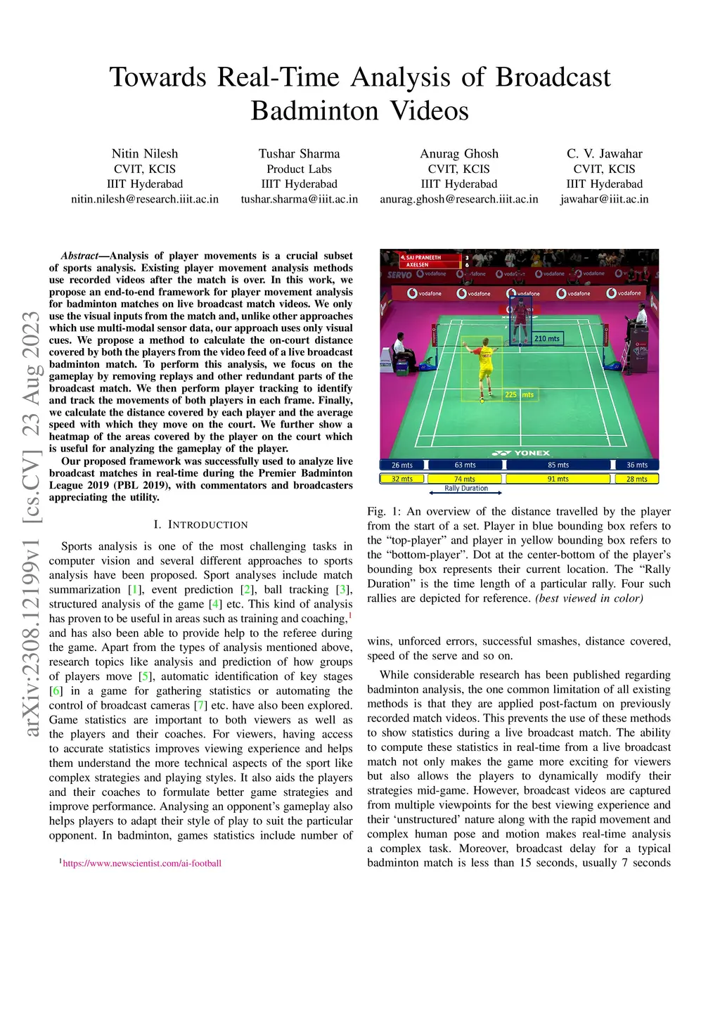 Towards Real-Time Analysis of Broadcast Badminton Videos