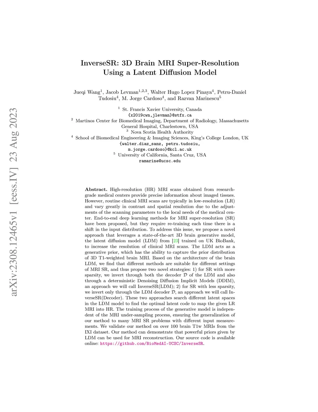 InverseSR: 3D Brain MRI Super-Resolution Using a Latent Diffusion Model