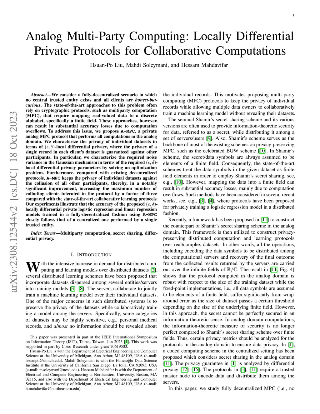Analog Multi-Party Computing: Locally Differential Private Protocols for