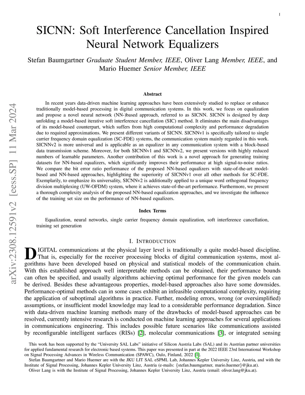 SICNN: Soft Interference Cancellation Inspired Neural Network Equalizers