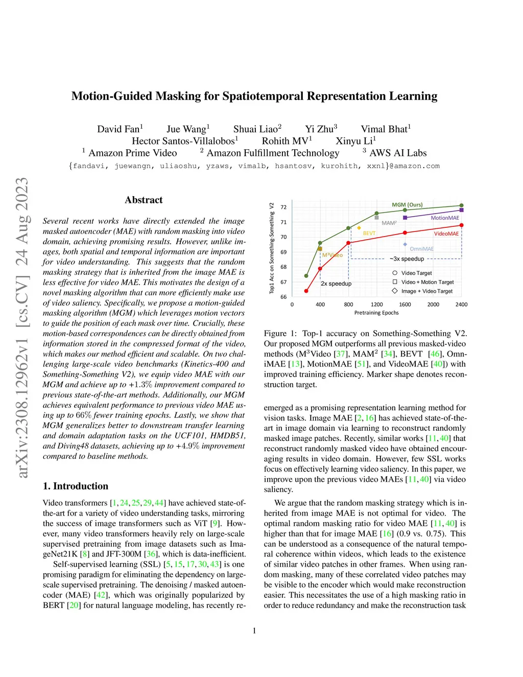 Motion-Guided Masking for Spatiotemporal Representation Learning