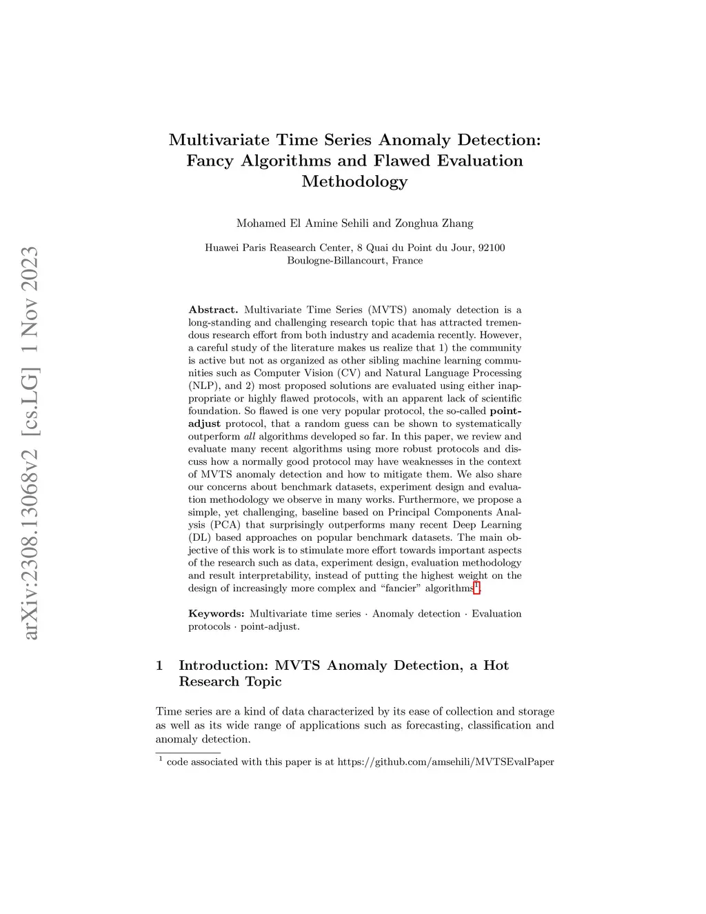 Multivariate Time Series (MVTS) anomaly detection is a long-standing and challenging research topic that has attracted tremendous research effort from both industry and academia recently. However, a careful study of the literature makes us realize that 1) the community is active but not as organized as other sibling machine learning communities such as Computer Vision (CV) and Natural Language Processing (NLP), and 2) most proposed solutions are evaluated using either inappropriate or highly flawed protocols, with an apparent lack of scientific foundation. So flawed is one very popular protocol, the so-called point-adjust protocol, that a random guess can be shown to systematically outperform all algorithms developed so far. In this paper, we review and evaluate many recent algorithms using more robust protocols and discuss how a normally good protocol may have weaknesses in the context of MVTS anomaly detection and how to mitigate them. We also share our concerns about benchmark datasets, experiment design and evaluation methodology we observe in many works. Furthermore, we propose a simple, yet challenging, baseline based on Principal Components Analysis (PCA) that surprisingly outperforms many recent Deep Learning (DL) based approaches on popular benchmark datasets. The main objective of this work is to stimulate more effort towards important aspects of the research such as data, experiment design, evaluation methodology and result interpretability, instead of putting the highest weight on the design of increasingly more complex and "fancier" algorithms.