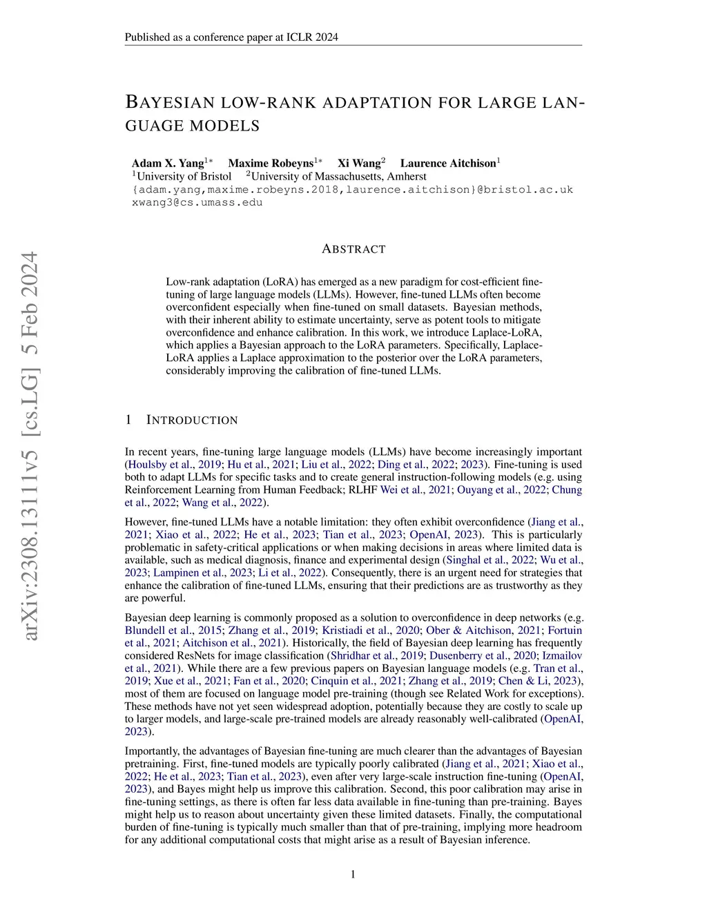 Bayesian Low-rank Adaptation for Large Language Models
