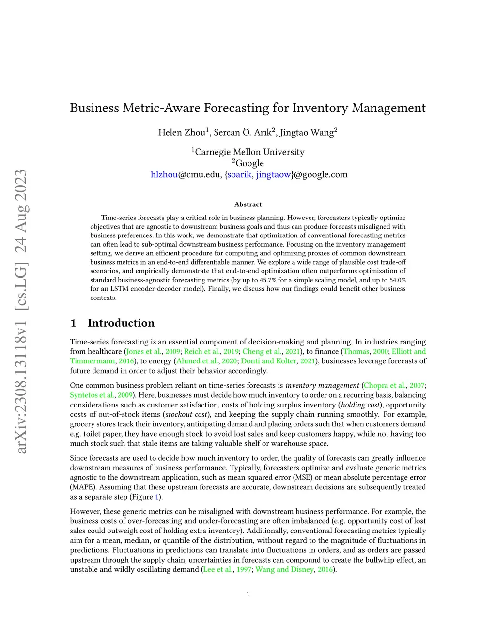 Business Metric-Aware Forecasting for Inventory Management