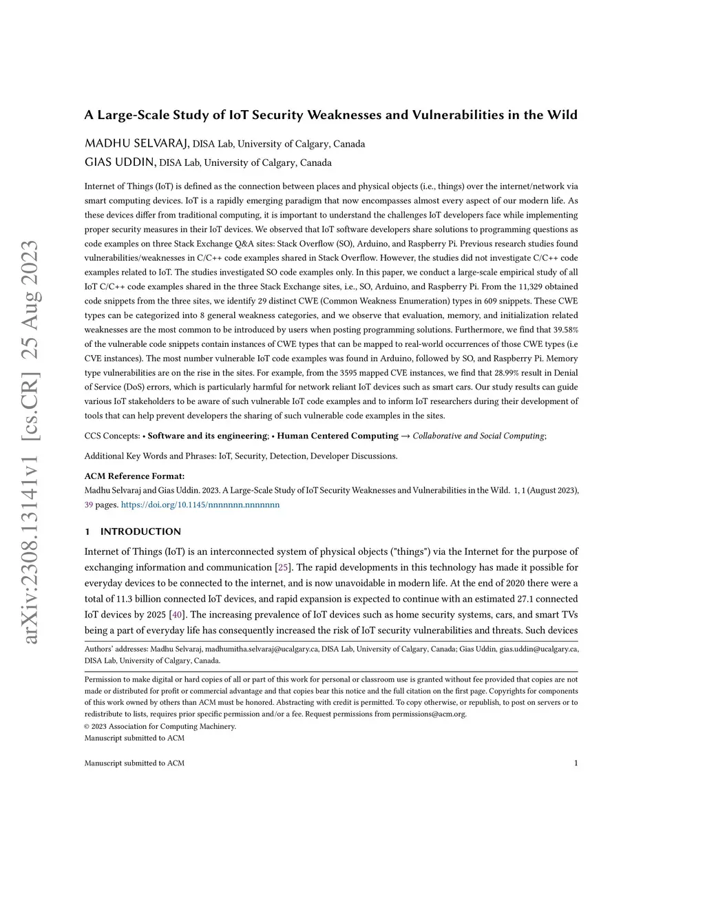 A Large-Scale Study of IoT Security Weaknesses and Vulnerabilities in