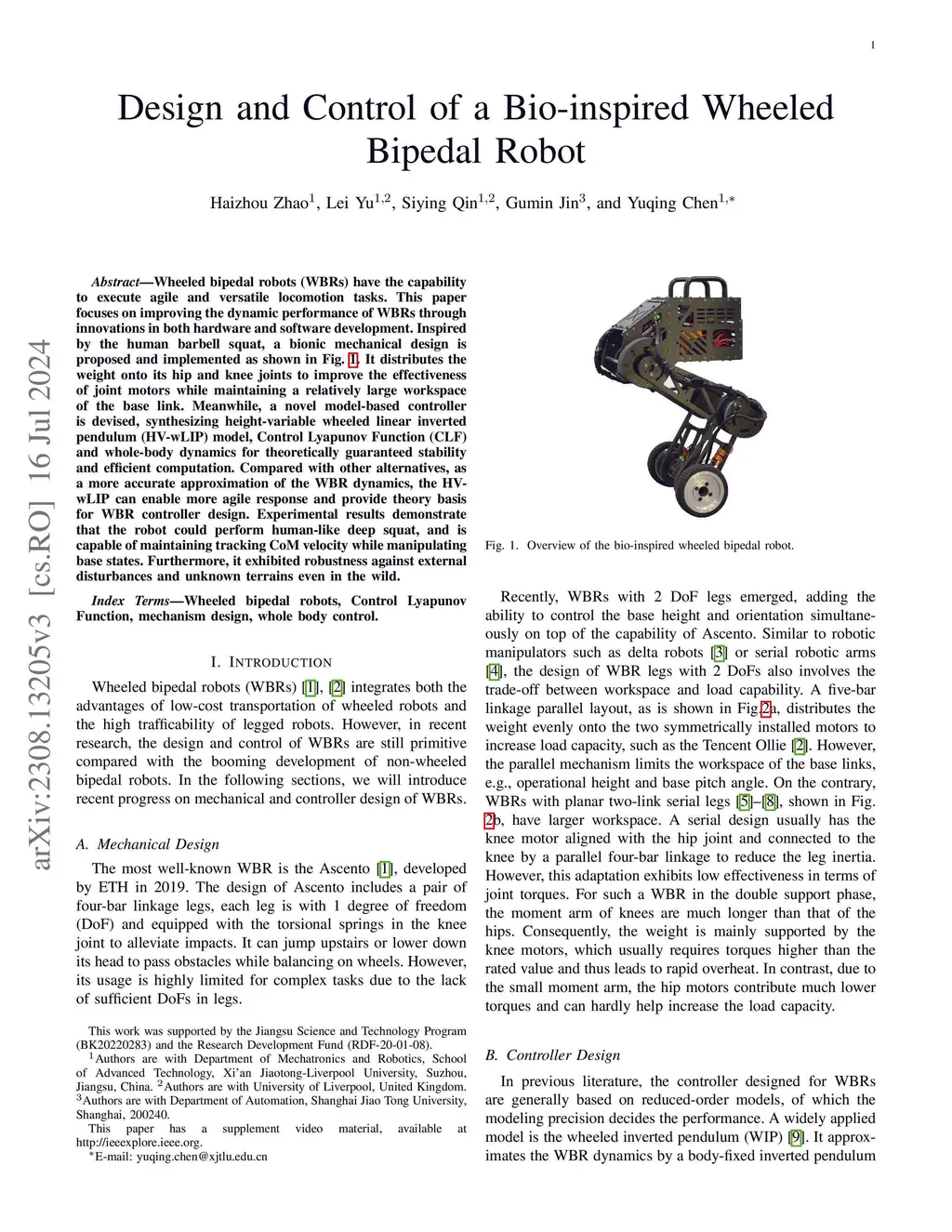 Wheeled bipedal robots (WBRs) have the capability to execute agile and versatile locomotion tasks. This paper focuses on improving the dynamic performance of WBRs through innovations in both hardware and software development. Inspired by the human barbell squat, a bionic mechanical design is proposed and implemented as shown in Fig. 1. It distributes the weight onto its hip and knee joints to improve the effectiveness of joint motors while maintaining a relatively large workspace of the base link. Meanwhile, a novel model-based controller is devised, synthesizing height-variable wheeled linear inverted pendulum (HV-wLIP) model, Control Lyapunov Function (CLF) and whole-body dynamics for theoretically guaranteed stability and efficient computation. Compared with other alternatives, as a more accurate approximation of the WBR dynamics, the HV-wLIP can enable more agile response and provide theory basis for WBR controller design. Experimental results demonstrate that the robot could perform human-like deep squat, and is capable of maintaining tracking CoM velocity while manipulating base states. Furthermore, it exhibited robustness against external disturbances and unknown terrains even in the wild.