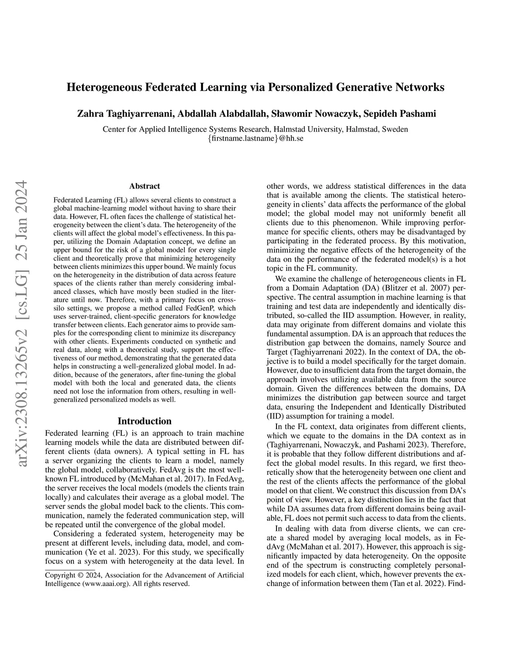 Heterogeneous Federated Learning via Personalized Generative Networks