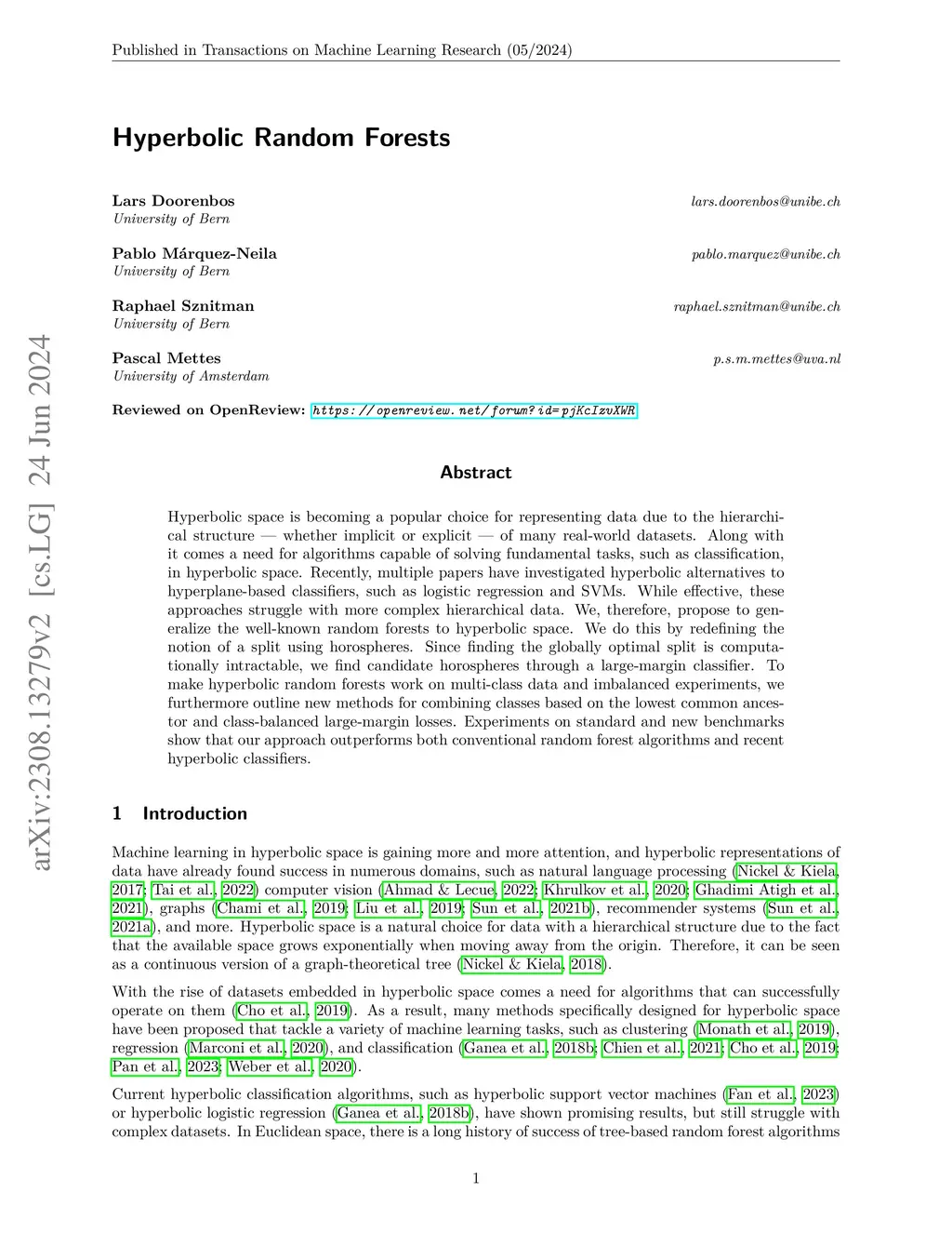 Hyperbolic Random Forests