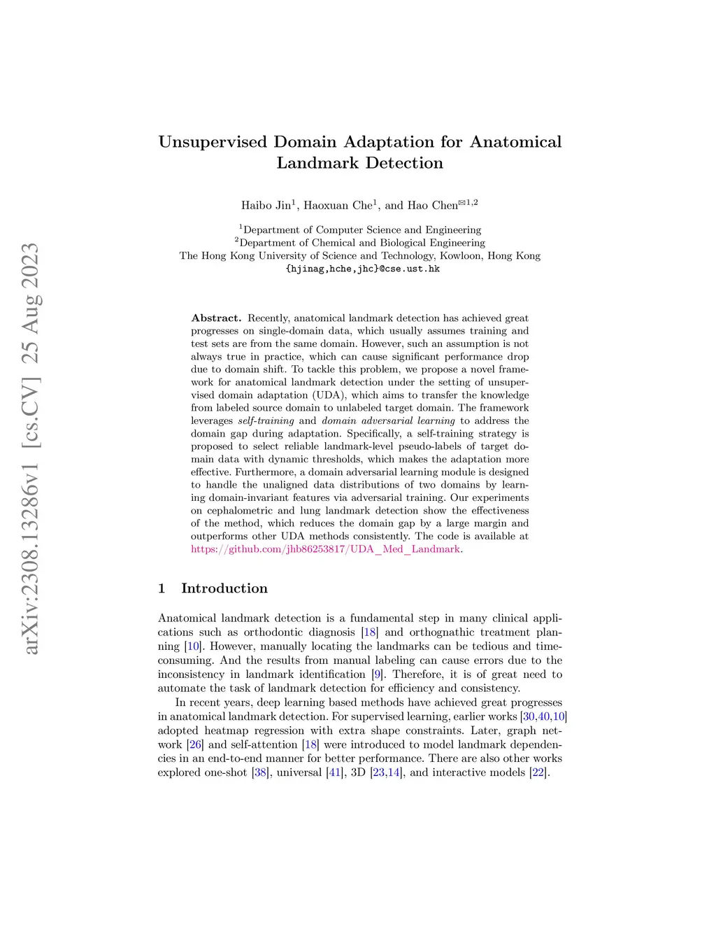Unsupervised Domain Adaptation for Anatomical Landmark Detection