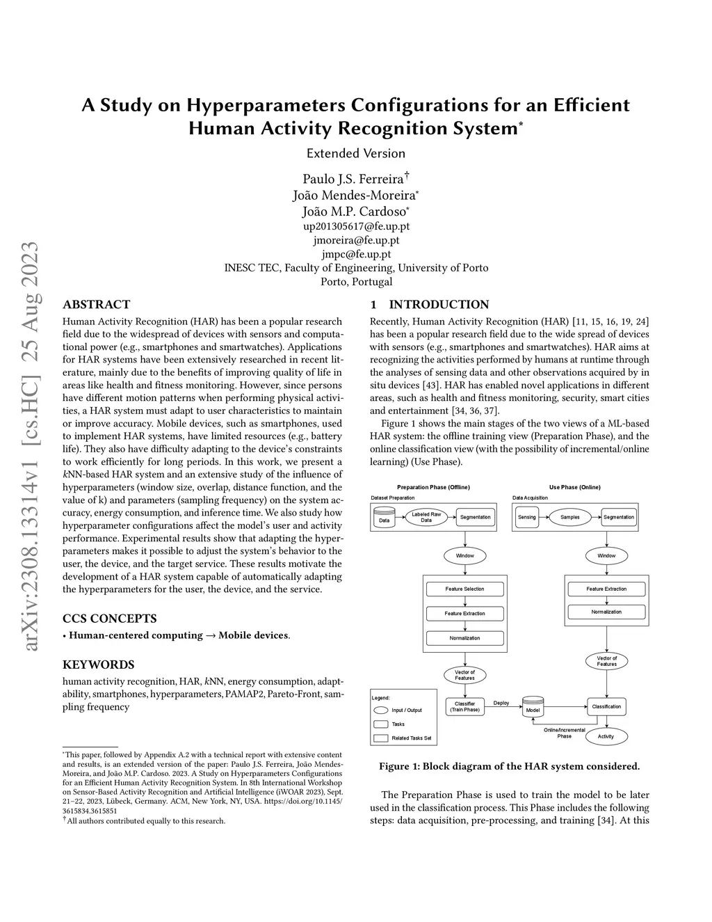 Human Activity Recognition (HAR) has been a popular research field due to the widespread of devices with sensors and computational power (e.g., smartphones and smartwatches). Applications for HAR systems have been extensively researched in recent literature, mainly due to the benefits of improving quality of life in areas like health and fitness monitoring. However, since persons have different motion patterns when performing physical activities, a HAR system must adapt to user characteristics to maintain or improve accuracy. Mobile devices, such as smartphones, used to implement HAR systems, have limited resources (e.g., battery life). They also have difficulty adapting to the device's constraints to work efficiently for long periods. In this work, we present a kNN-based HAR system and an extensive study of the influence of hyperparameters (window size, overlap, distance function, and the value of k) and parameters (sampling frequency) on the system accuracy, energy consumption, and inference time. We also study how hyperparameter configurations affect the model's user and activity performance. Experimental results show that adapting the hyperparameters makes it possible to adjust the system's behavior to the user, the device, and the target service. These results motivate the development of a HAR system capable of automatically adapting the hyperparameters for the user, the device, and the service.