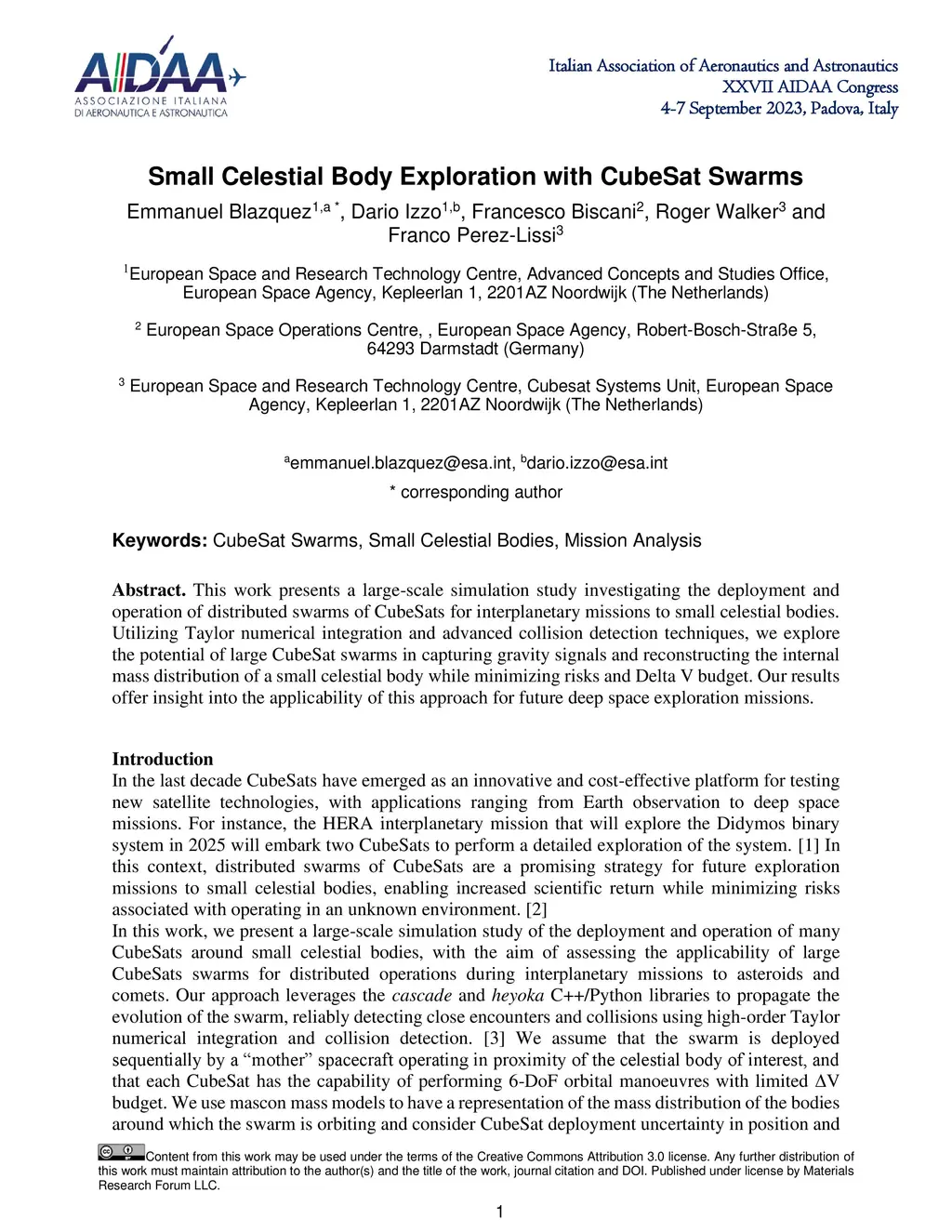 This work presents a large-scale simulation study investigating the deployment and operation of distributed swarms of CubeSats for interplanetary missions to small celestial bodies. Utilizing Taylor numerical integration and advanced collision detection techniques, we explore the potential of large CubeSat swarms in capturing gravity signals and reconstructing the internal mass distribution of a small celestial body while minimizing risks and Delta V budget. Our results offer insight into the applicability of this approach for future deep space exploration missions.