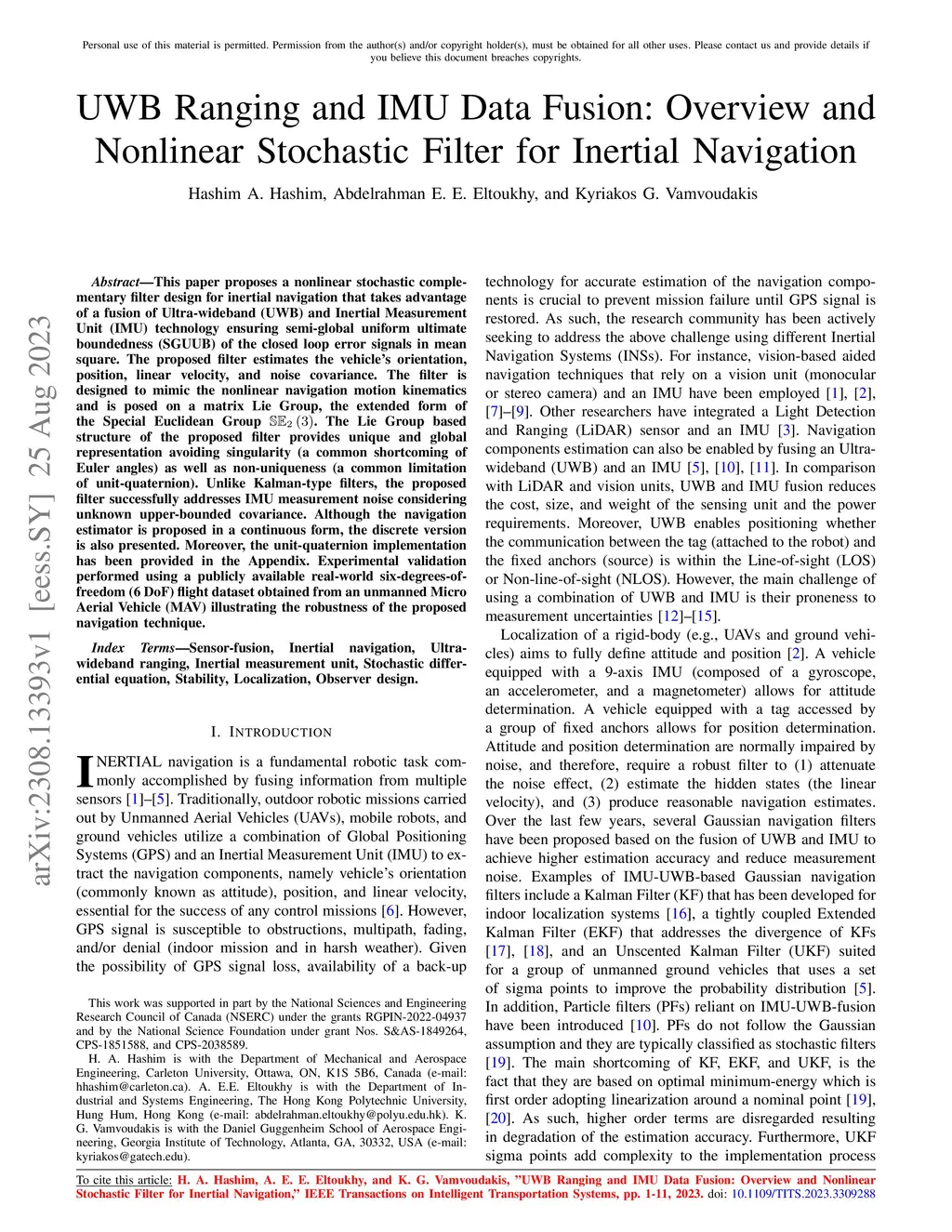 UWB Ranging and IMU Data Fusion: Overview and Nonlinear Stochastic